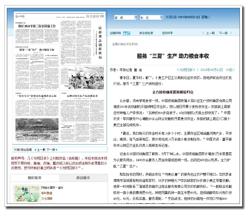 春爭日,夏爭時。眼下,小麥主產(chǎn)區(qū)正從南到北迎來收獲。各地供銷合作社積極行動,服務(wù)“三夏”生產(chǎn)順利進行。